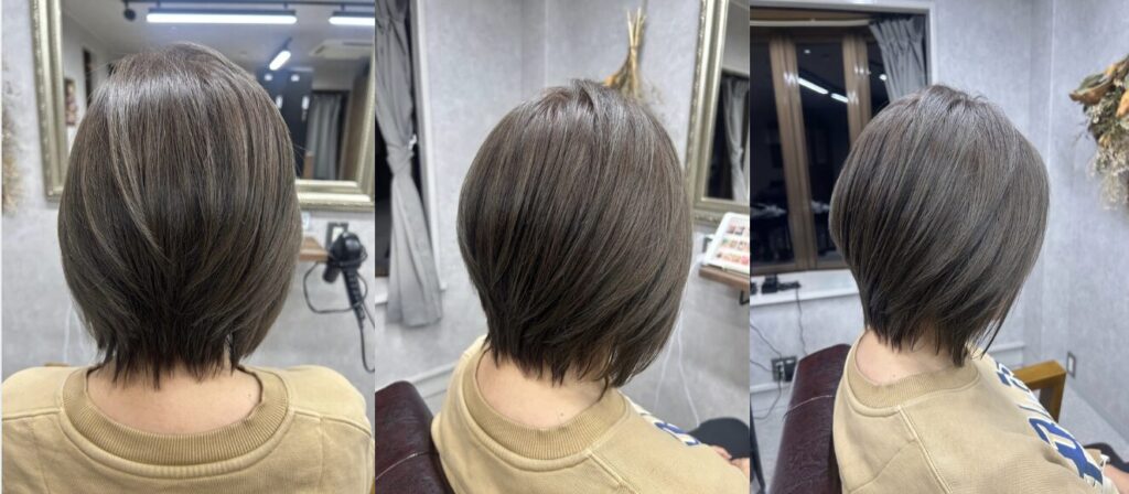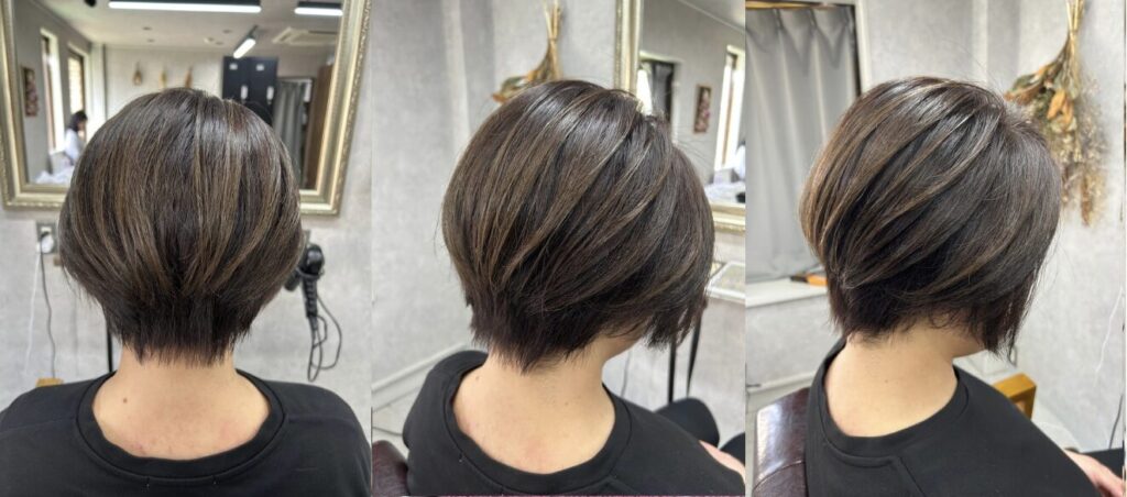 堺市深井/白髪ぼかしハイライト×前下がりショートレイヤー