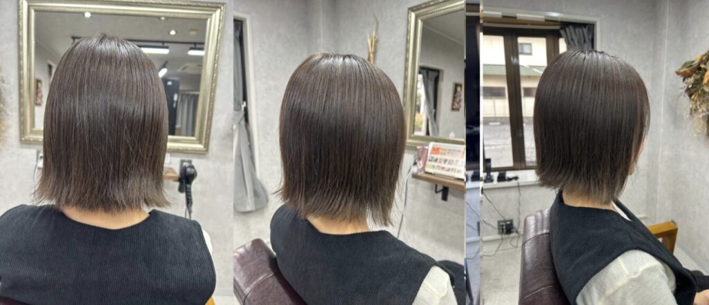 堺市深井/切りっぱなしボブ×透明感グレージュ/外ハネボブ